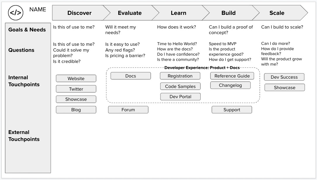 It's a tool that helps you to think holistically about the experience from the developers' perspective. - DevRel Book