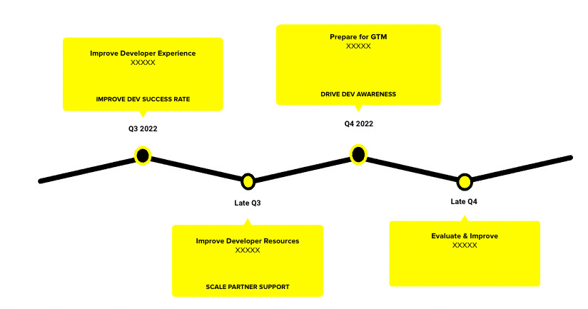 Within your strategy you should define the current developer journey map (per product). As well as clearly share what your dream developer journey map could look like. It's a great way for folks to be able to visually understand the progress you're hoping to make in DevRel.