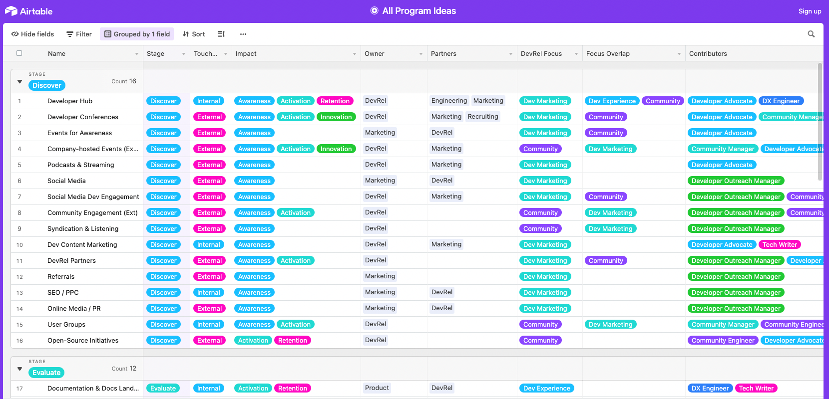 DevRel Program Examples in Airtable